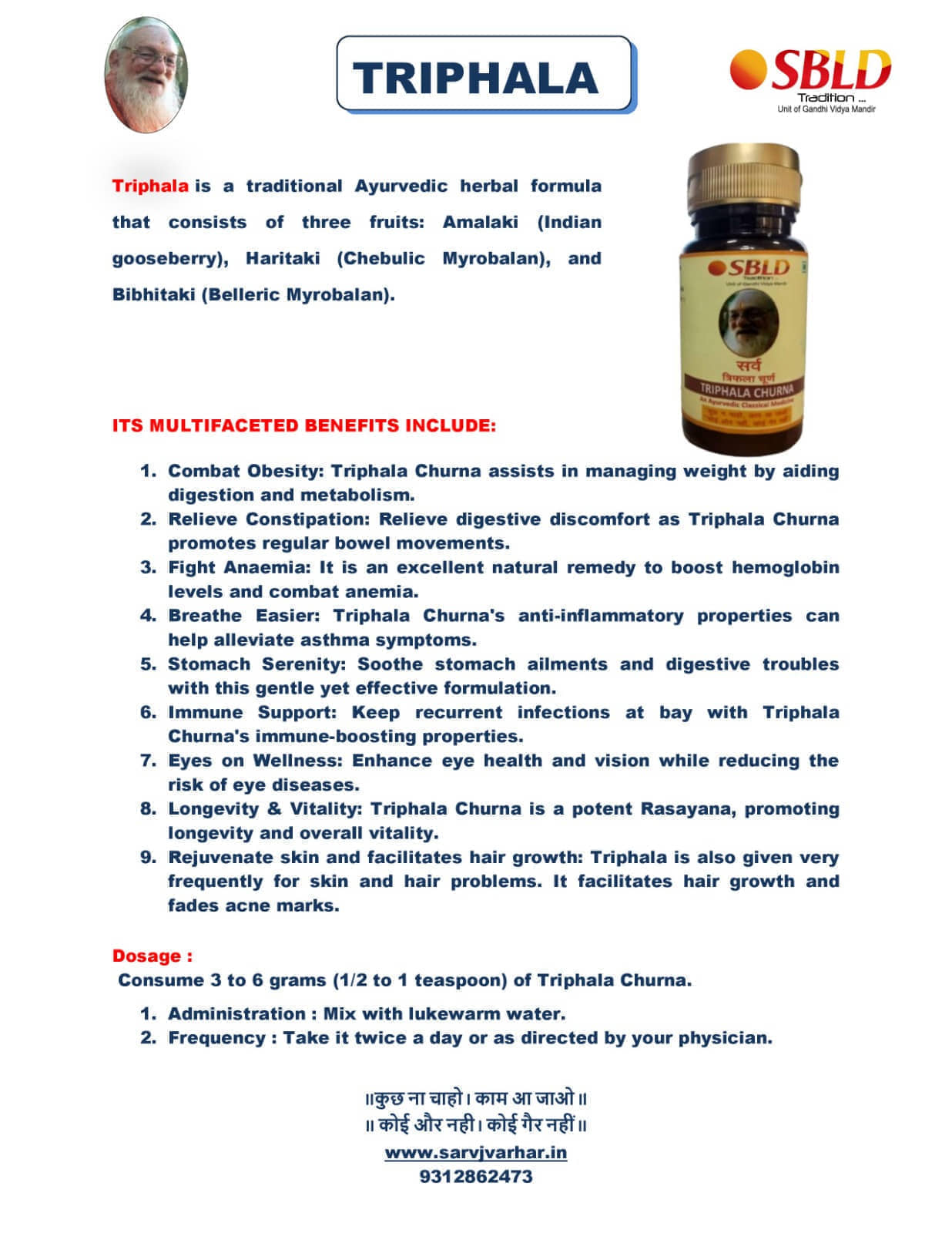 In the context of eye flu, which is commonly known as conjunctivitis, Triphala may be used for its potential antimicrobial and anti-inflammatory properties. Ayurveda practitioners recommend Triphala eye wash to help alleviate the symptoms of conjunctivitis, such as redness, itching, and irritation.